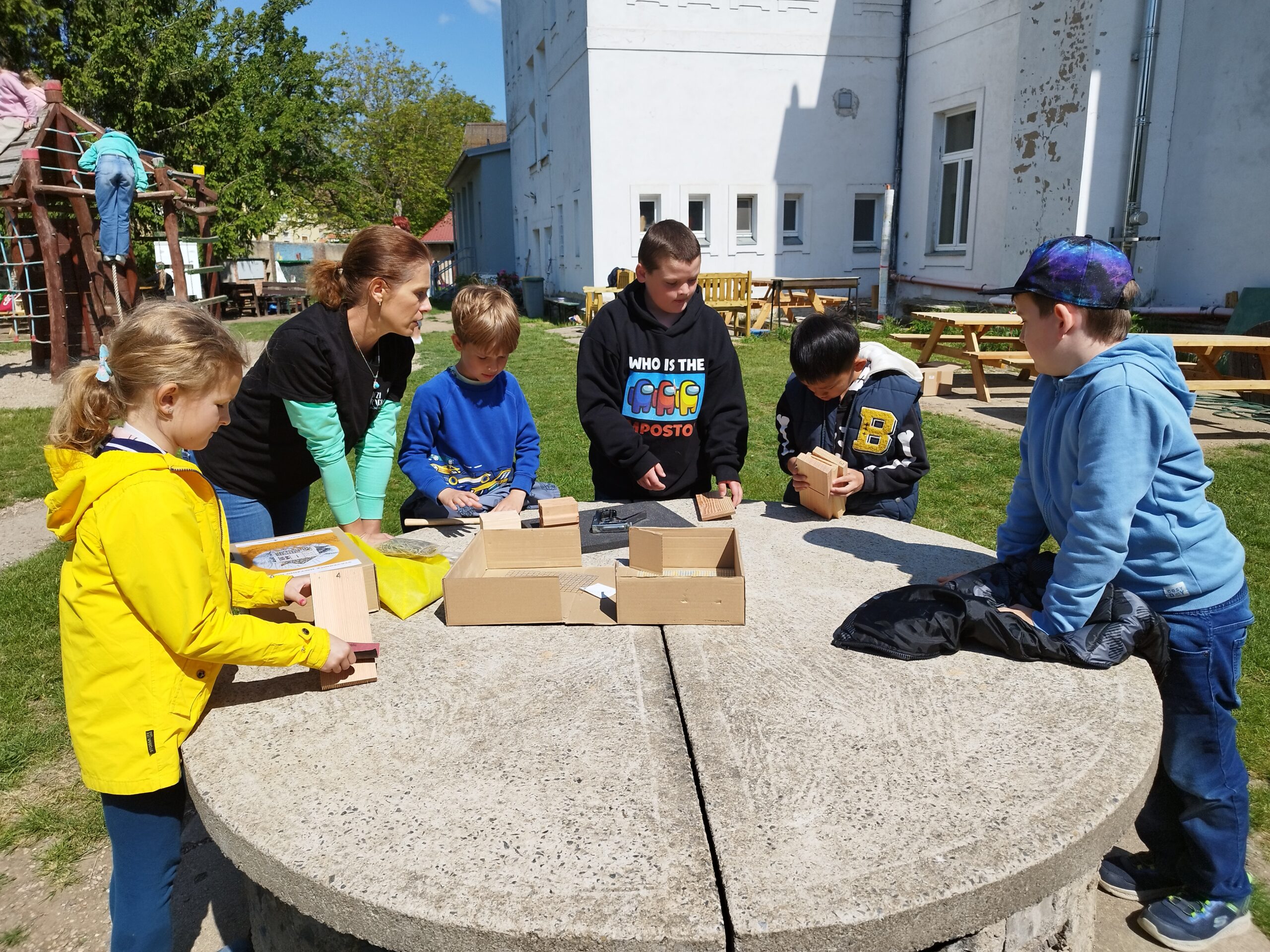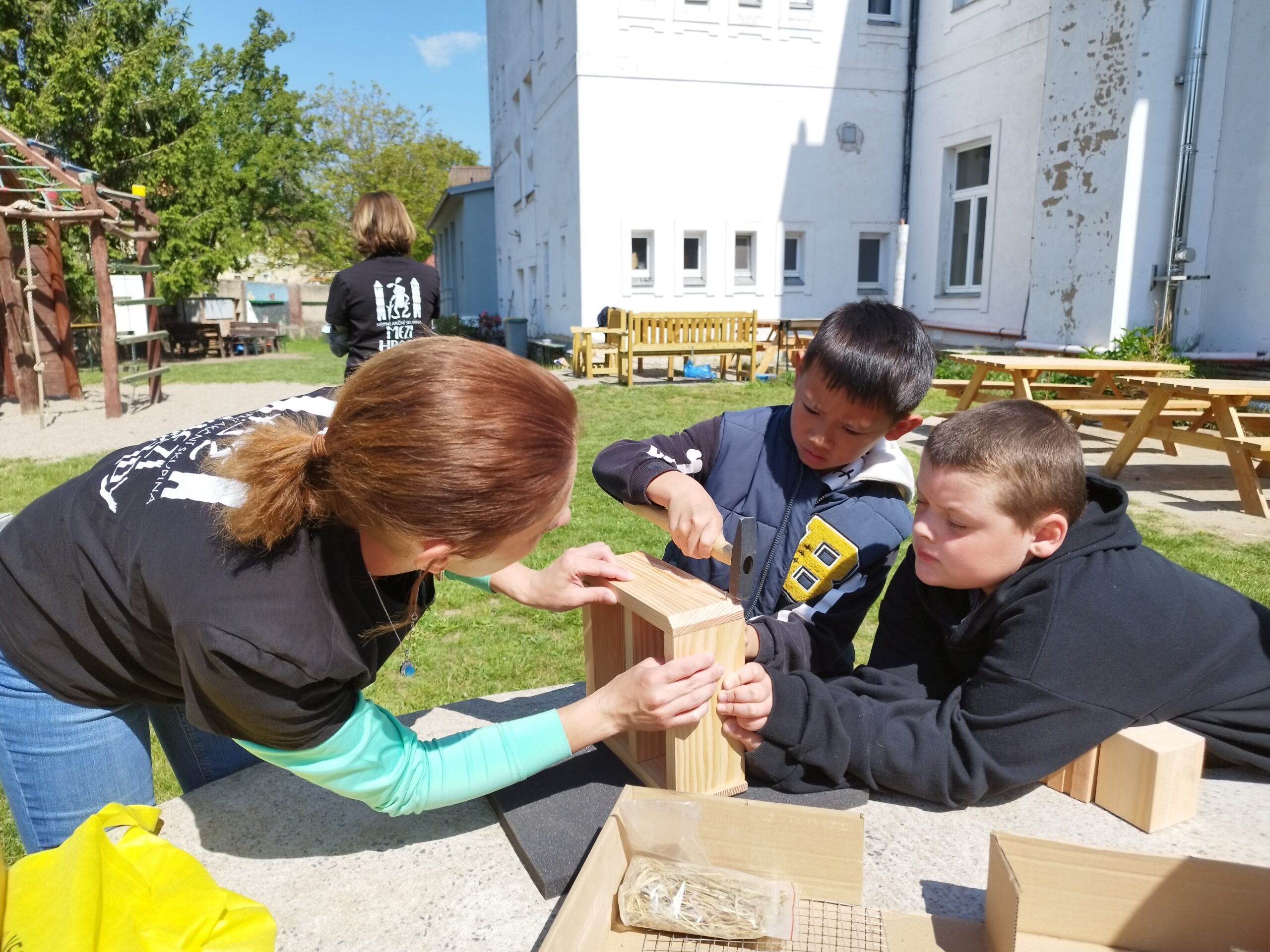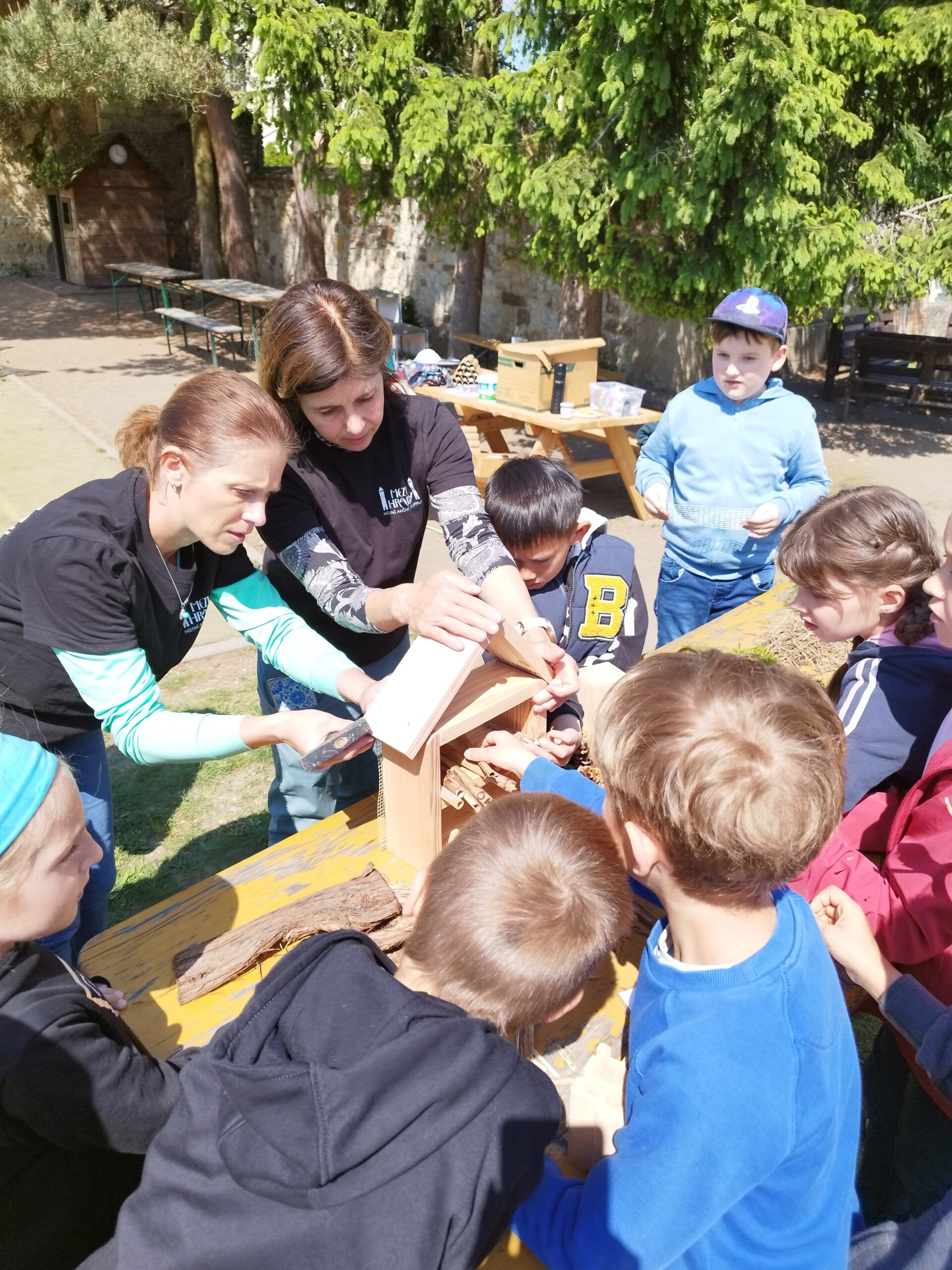 Tento týden si některé třídy mohly vyzkoušet jak náročné je být včelkou nebo kde může spokojeně žít užitečný hmyz v našich zahradách. Žáci pracovali samostatně i ve skupinách. Počasí nám přálo, bylo to super.