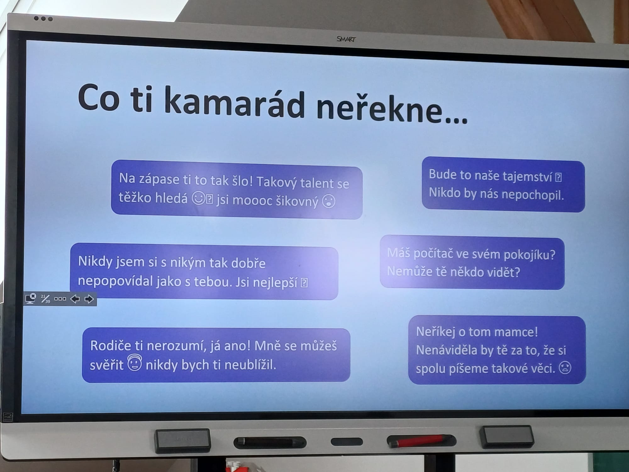 Děti byly skvělé, všichni se aktivně zapojili do diskuze a společně našli postupy jak se v takových situacích správně zachovat, na koho se lze bezpečně obrátit.