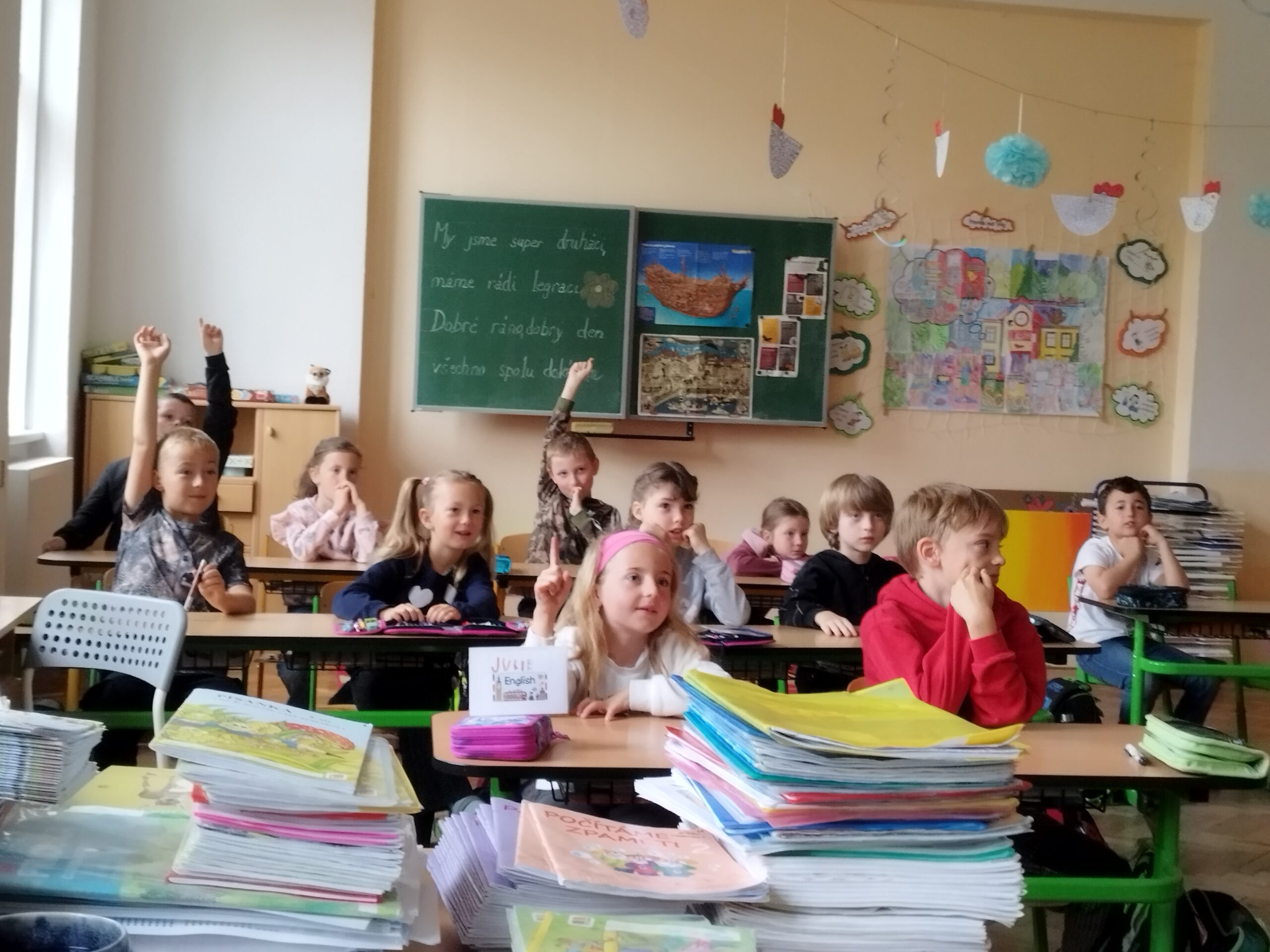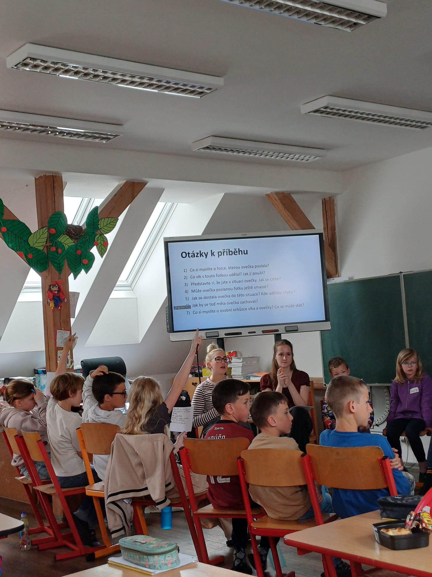Žáci a žákyně 2.A si dnes připomněli, jak správně a hlavně „zdravě“ používat mobilní telefon. Na základě maňáskového představení postavičky Vlastík a Evička ztvárnili situaci, kde Vlastík dostal mobilní telefon a od té chvíle ho nedal z ruky. V noci nespal a stále hrál hry a dokonce zapomněl i na svou nejlepší kamarádku, se kterou dříve trávil spoustu času venku. Děti měly za úkol, identifikovat škodlivé situace a pojmenovat jaké negativní dopady může tato změna chování na Vlastíka mít. Dalším úkolem bylo, jak by mohla Evička Vlastíkovi pomoci s jeho závislostí na mobilním telefonu.