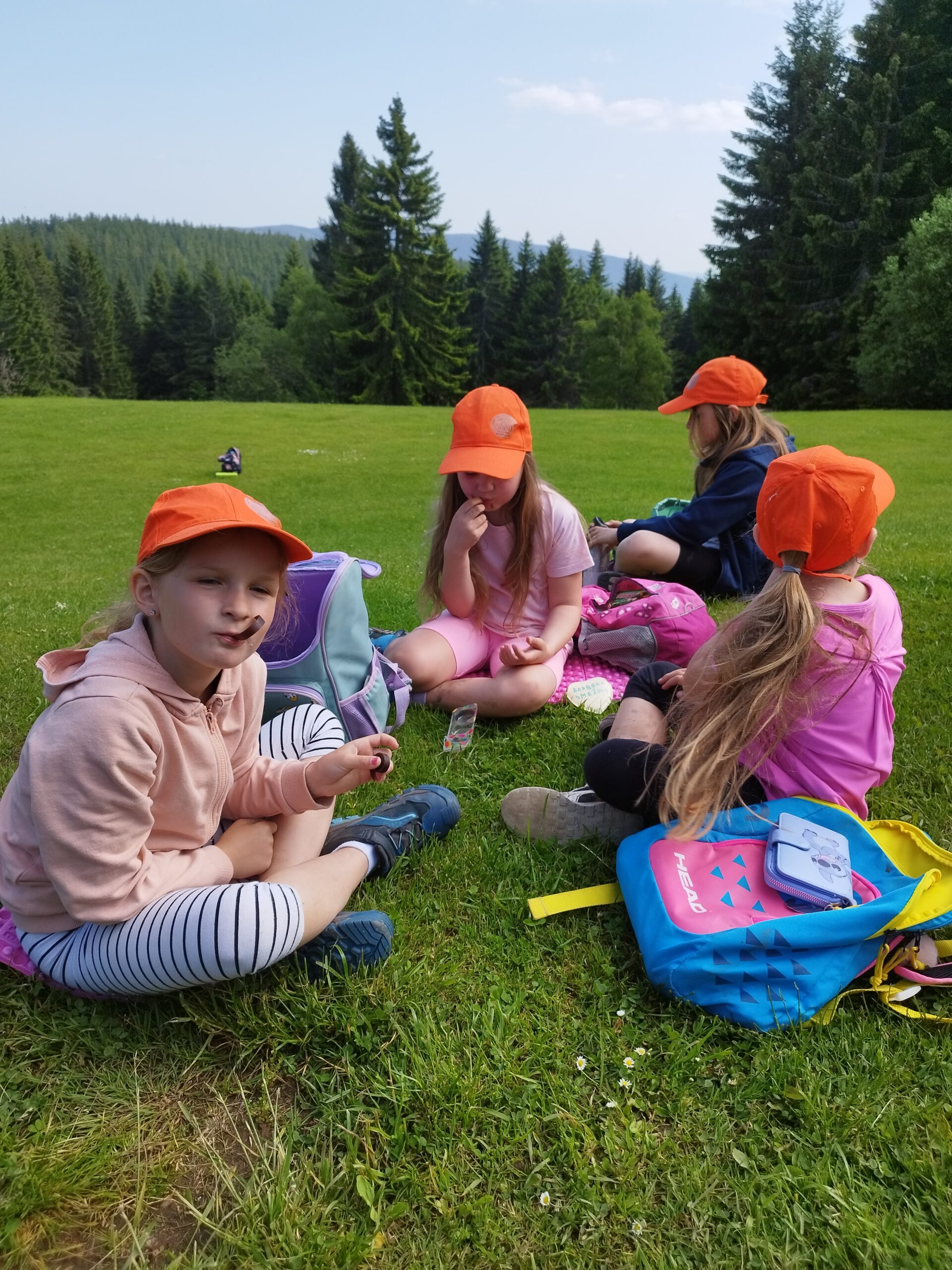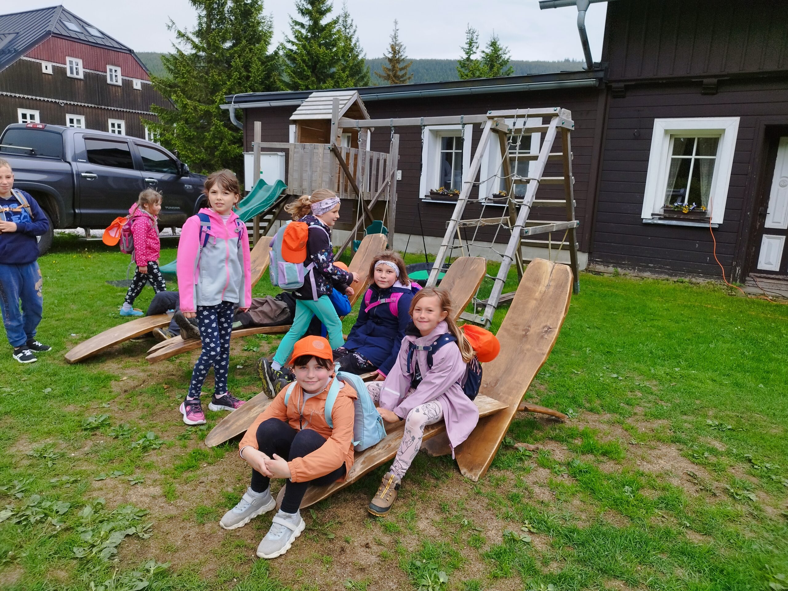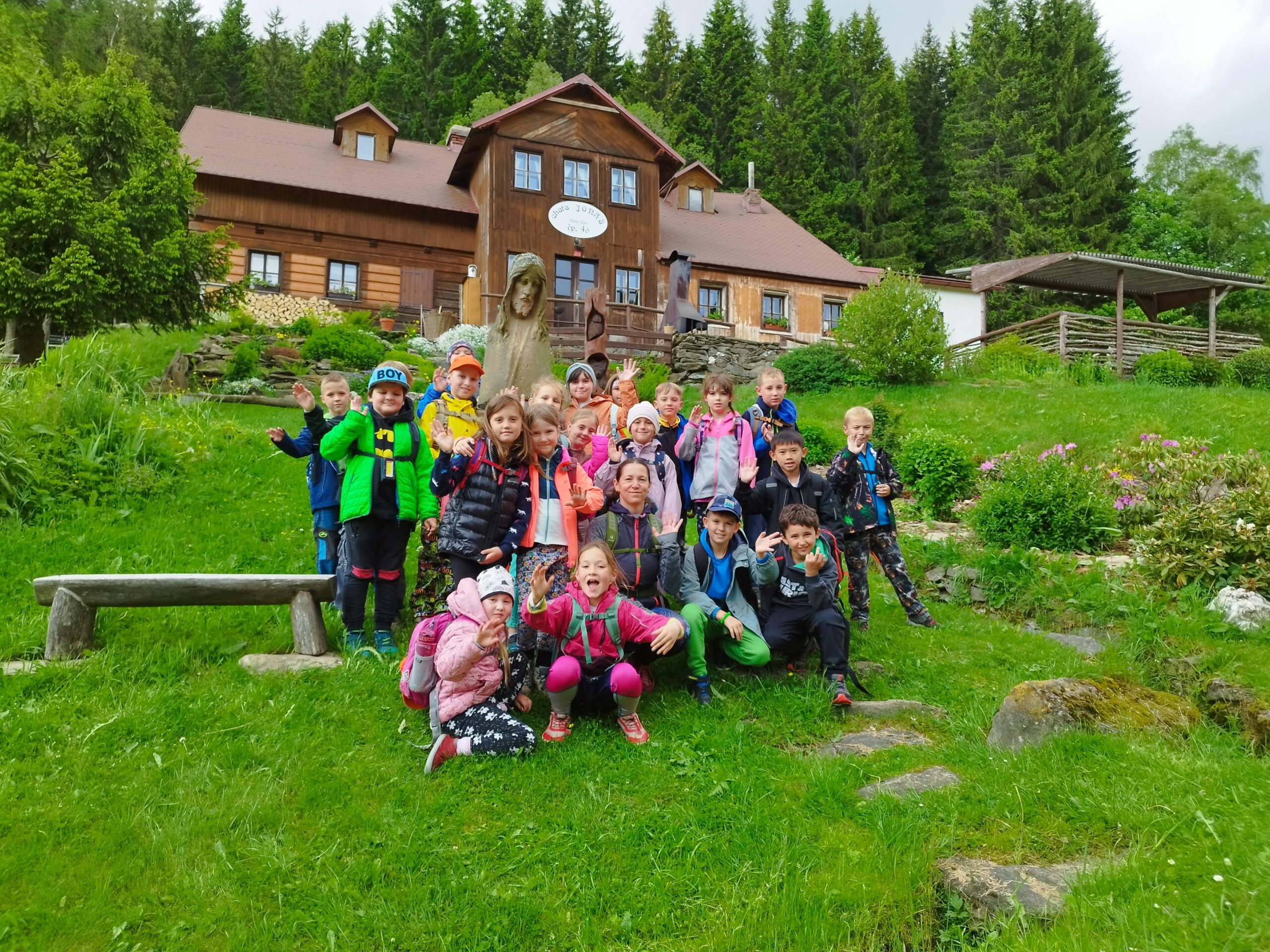 Dnešní den druháci a páťáci vyrazili na úžasnou hřebenovou túru. Sluníčko krásně svítilo, bylo vidět daleko do Polska. Prvňáci si užívali v ZOO parku Mochomůrka. Večer jsme se sešli u táboráku, pekli buřty a šup do postele. Bylo to tu moc fajn, ale moc se na vás těšíme. Dobrou noc