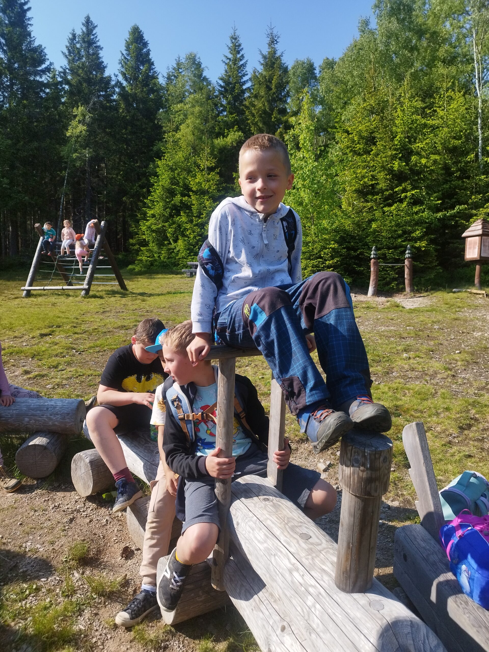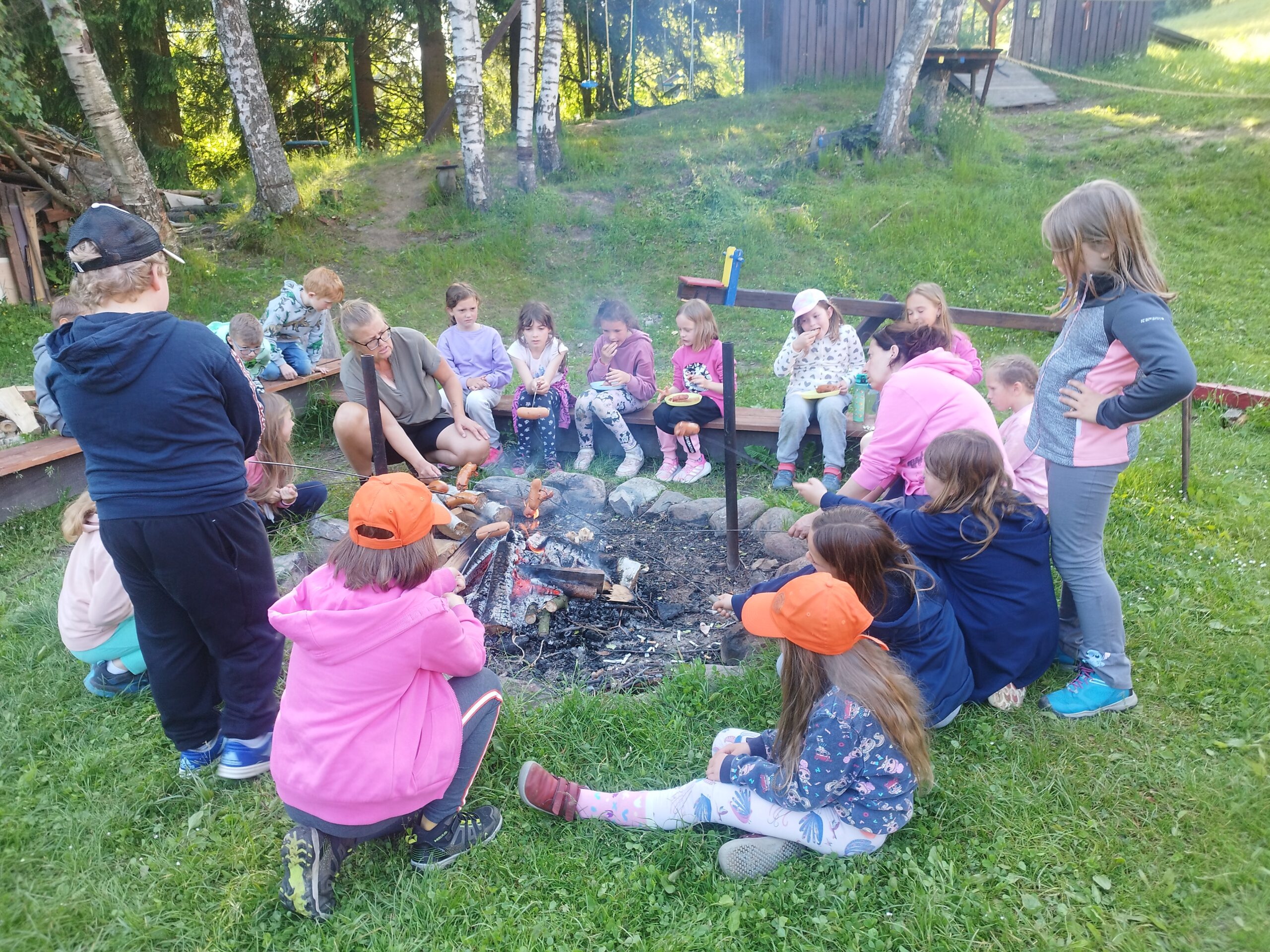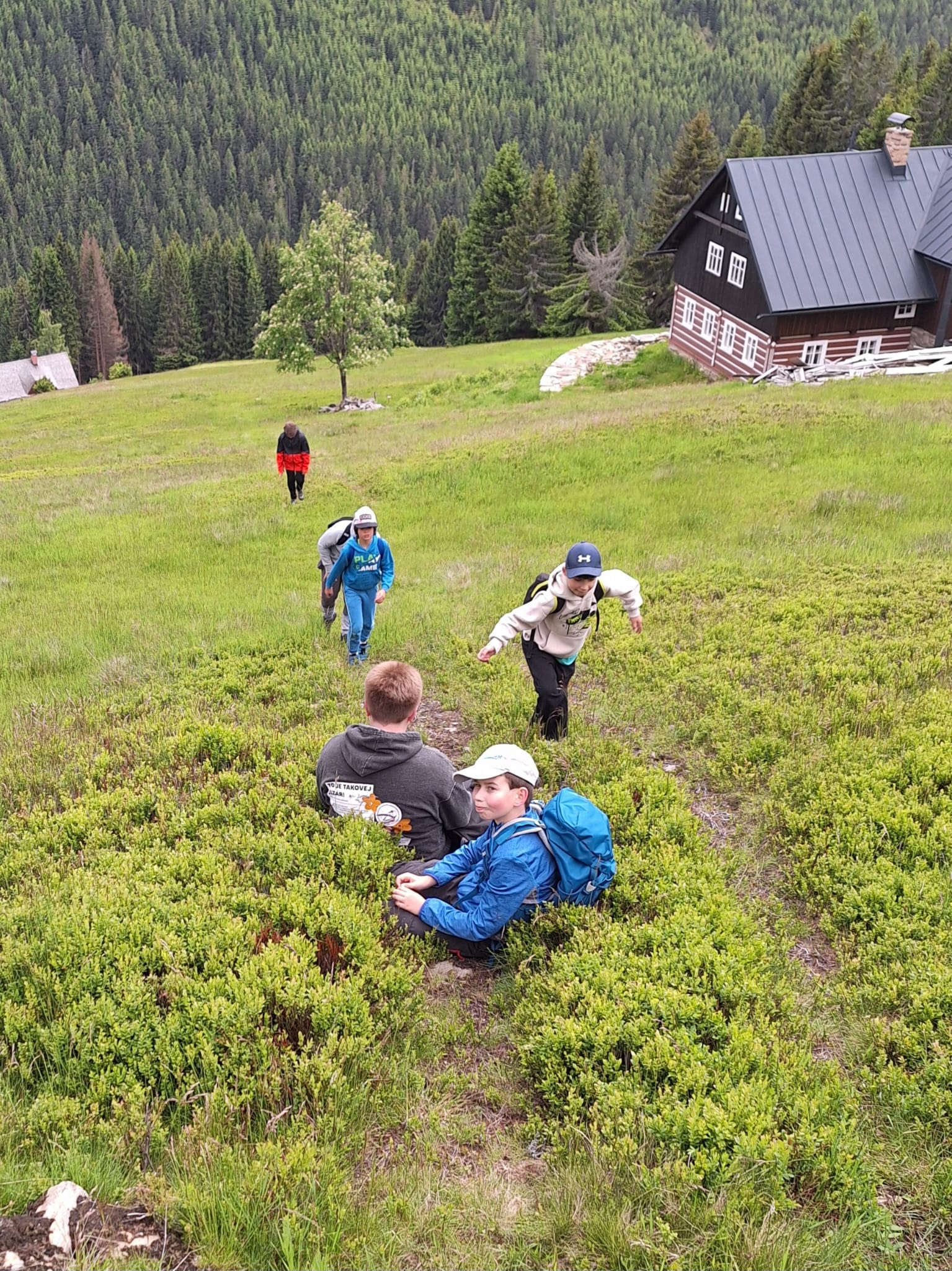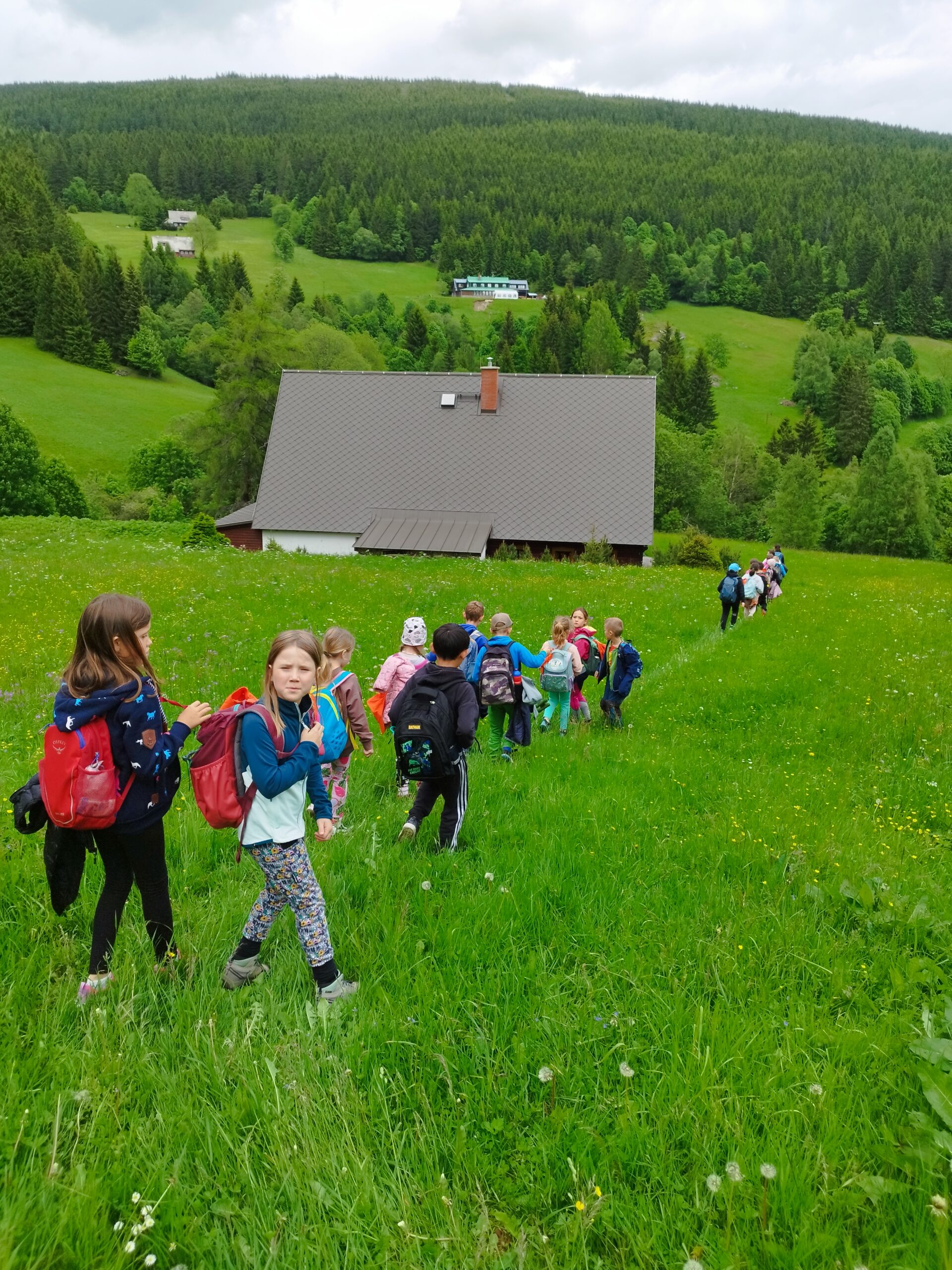 Dnešní den druháci a páťáci vyrazili na úžasnou hřebenovou túru. Sluníčko krásně svítilo, bylo vidět daleko do Polska. Prvňáci si užívali v ZOO parku Mochomůrka. Večer jsme se sešli u táboráku, pekli buřty a šup do postele. Bylo to tu moc fajn, ale moc se na vás těšíme. Dobrou noc