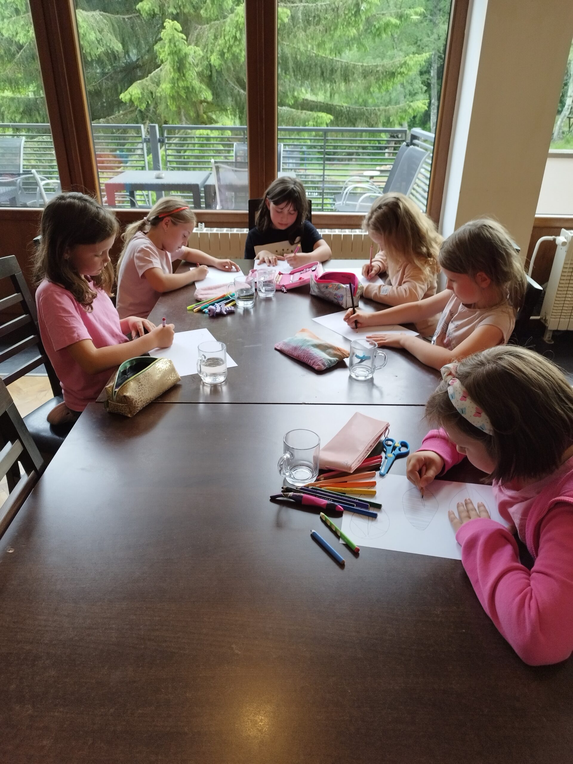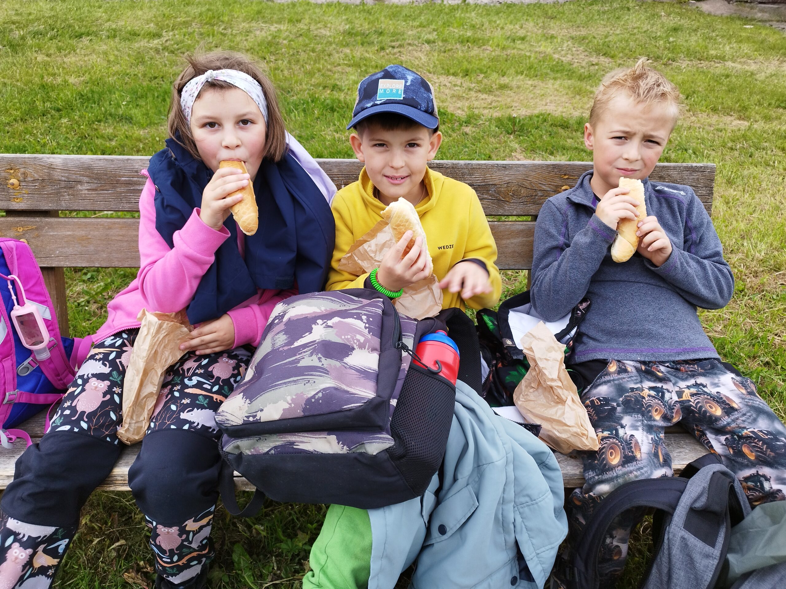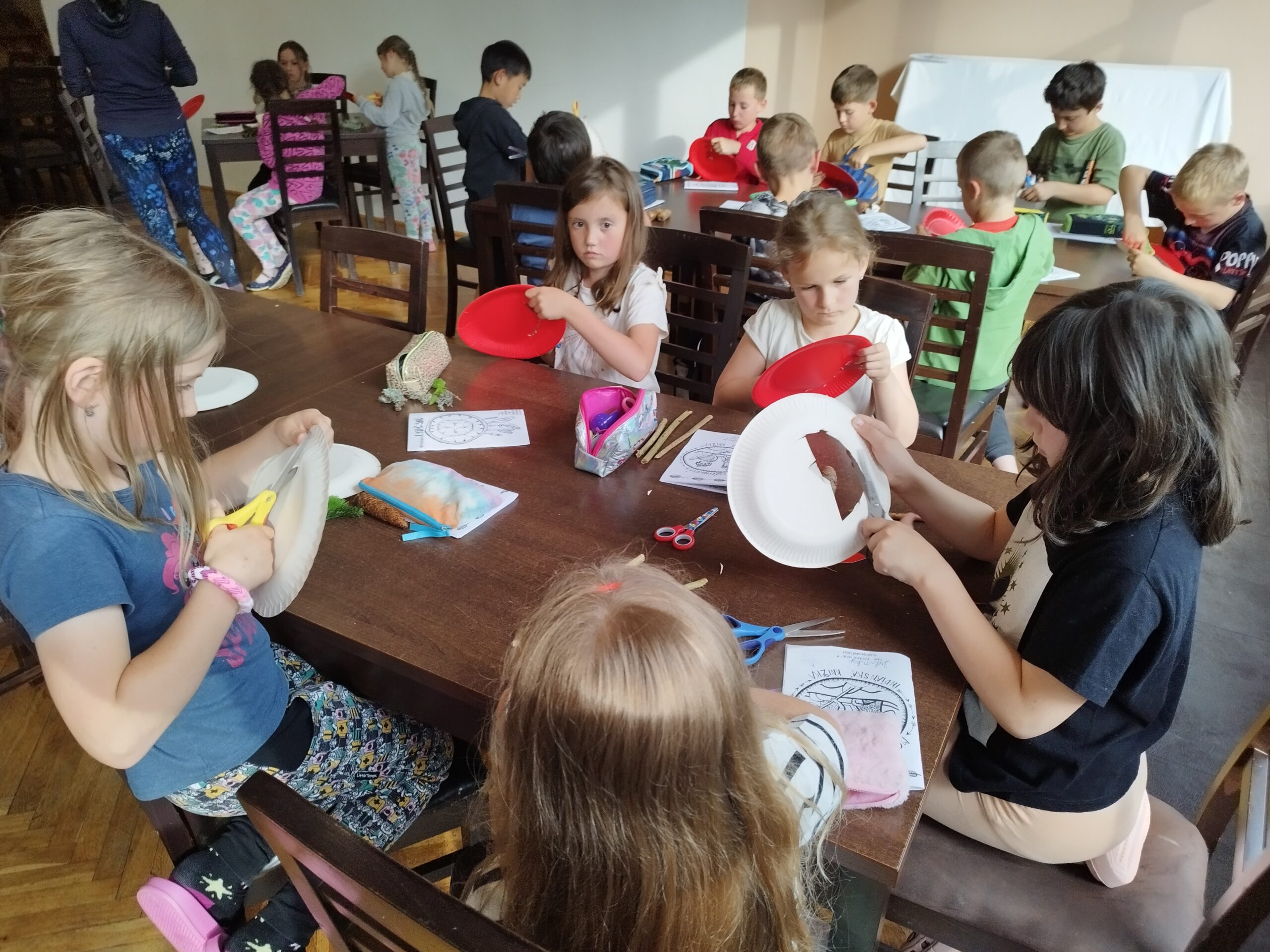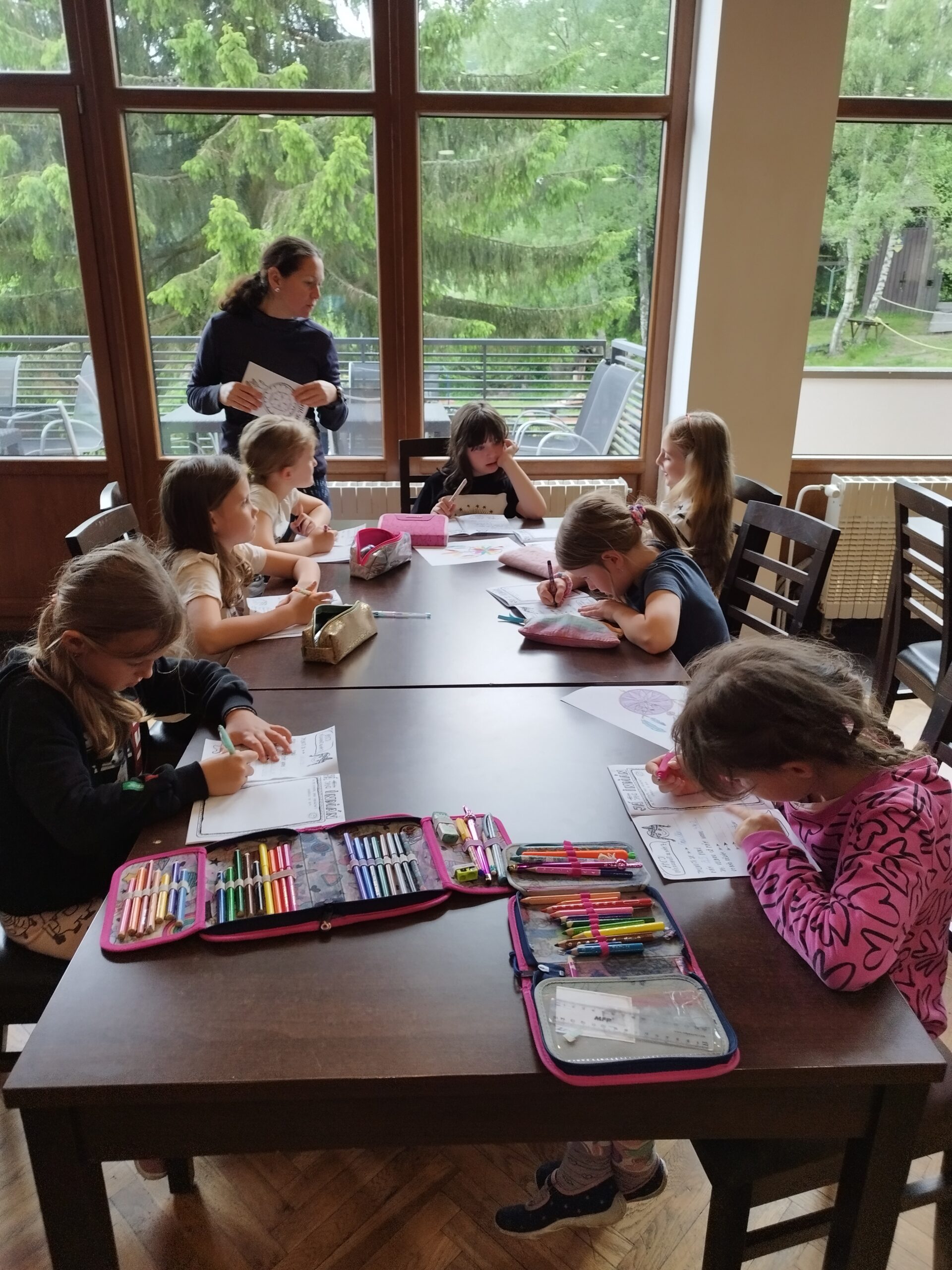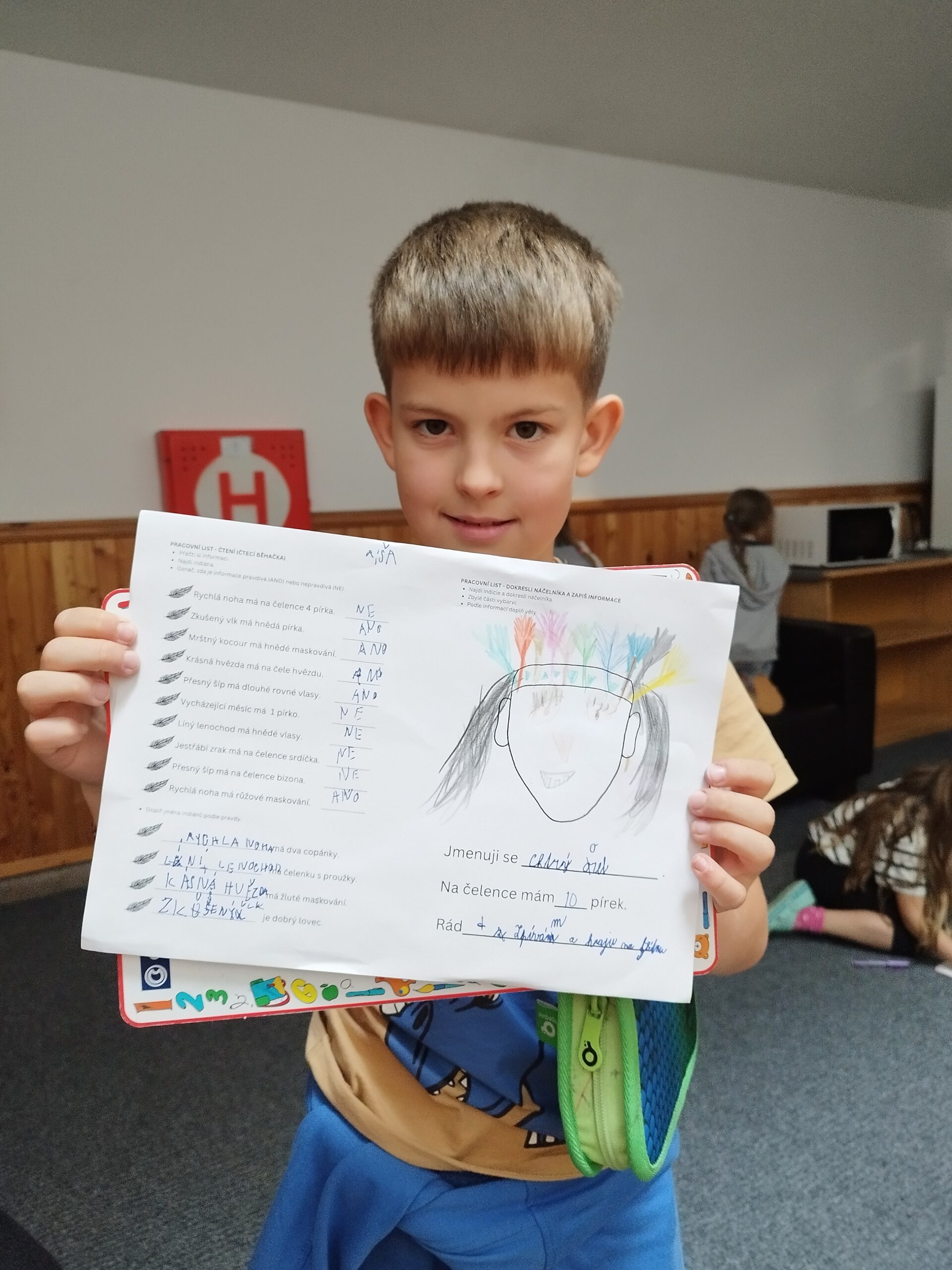 Druhý den nás přivítalo sluníčko a naprosto úžasná snídaně v podobě švédského stolu. Byla šunka, sýr, tři druhy pomazánek, vajíčka natvrdo, mini párečky, zelenina ovoce, med, marmeláda, jogurt, lupínky, mazanec, bábovka… Pak jednotlivé třídy vyrazily dle svého programu do přírody. K obědu jsme se opět sešli u výborného oběda a zase hurá ven. Společnou večeři jsme si osladili s buchtičkami se šódo. Večer druháci vyráběli indiánské čelenky, prvňáci psali deník a páťáci hráli únikovou hru. Zítra druháky a páťáky čeká celodenní výlet, tak šup do postele a dobrou noc.