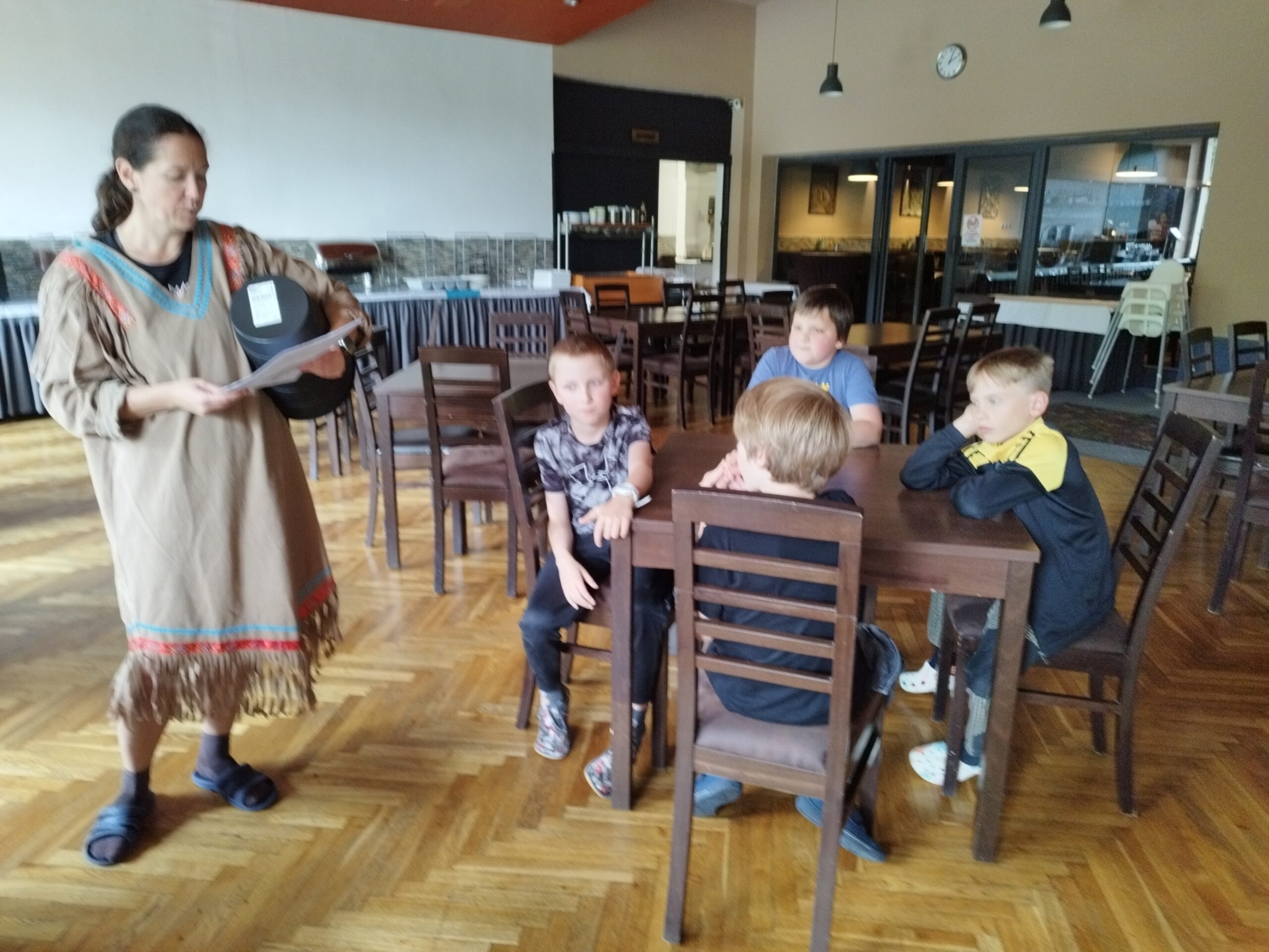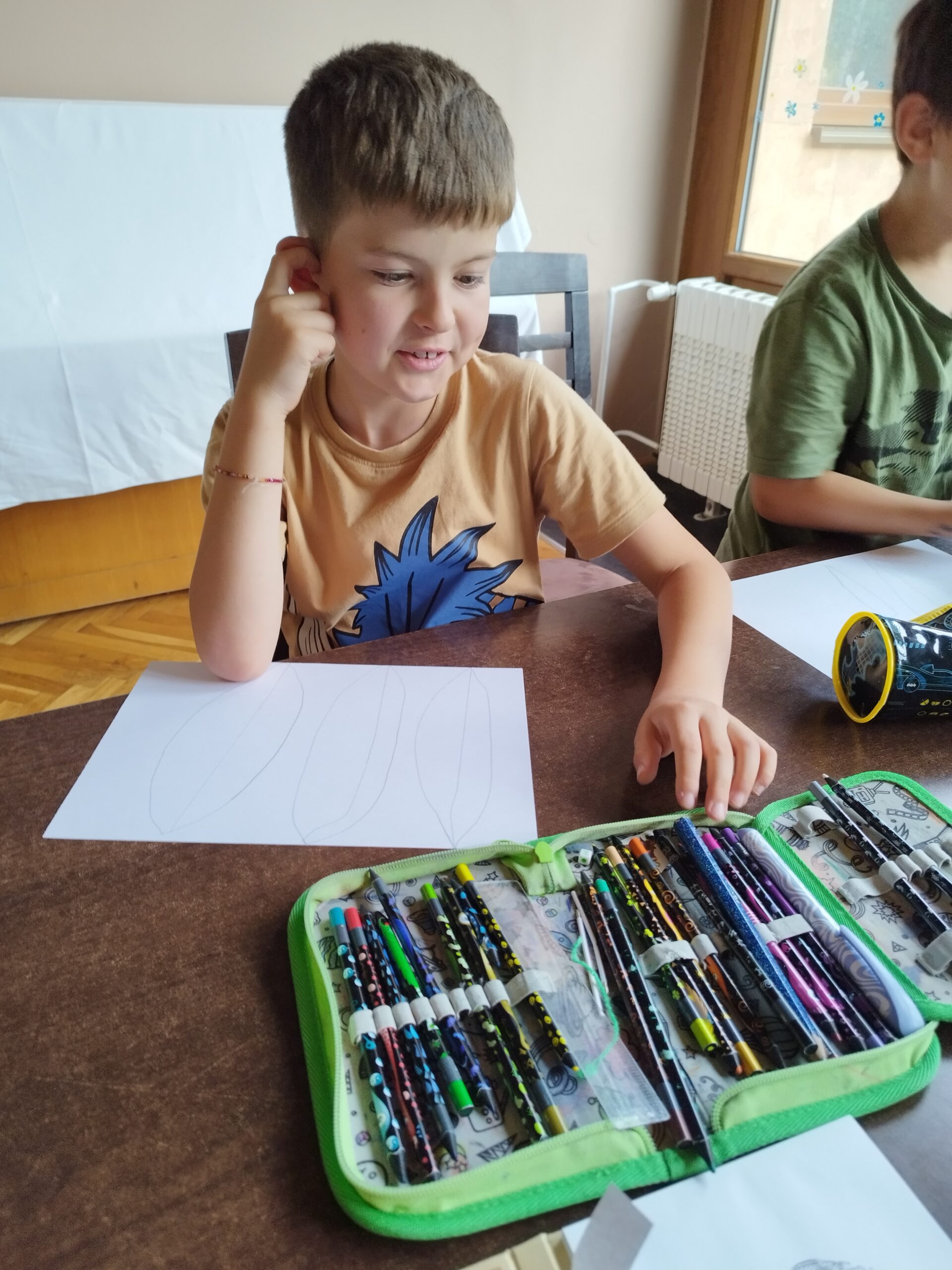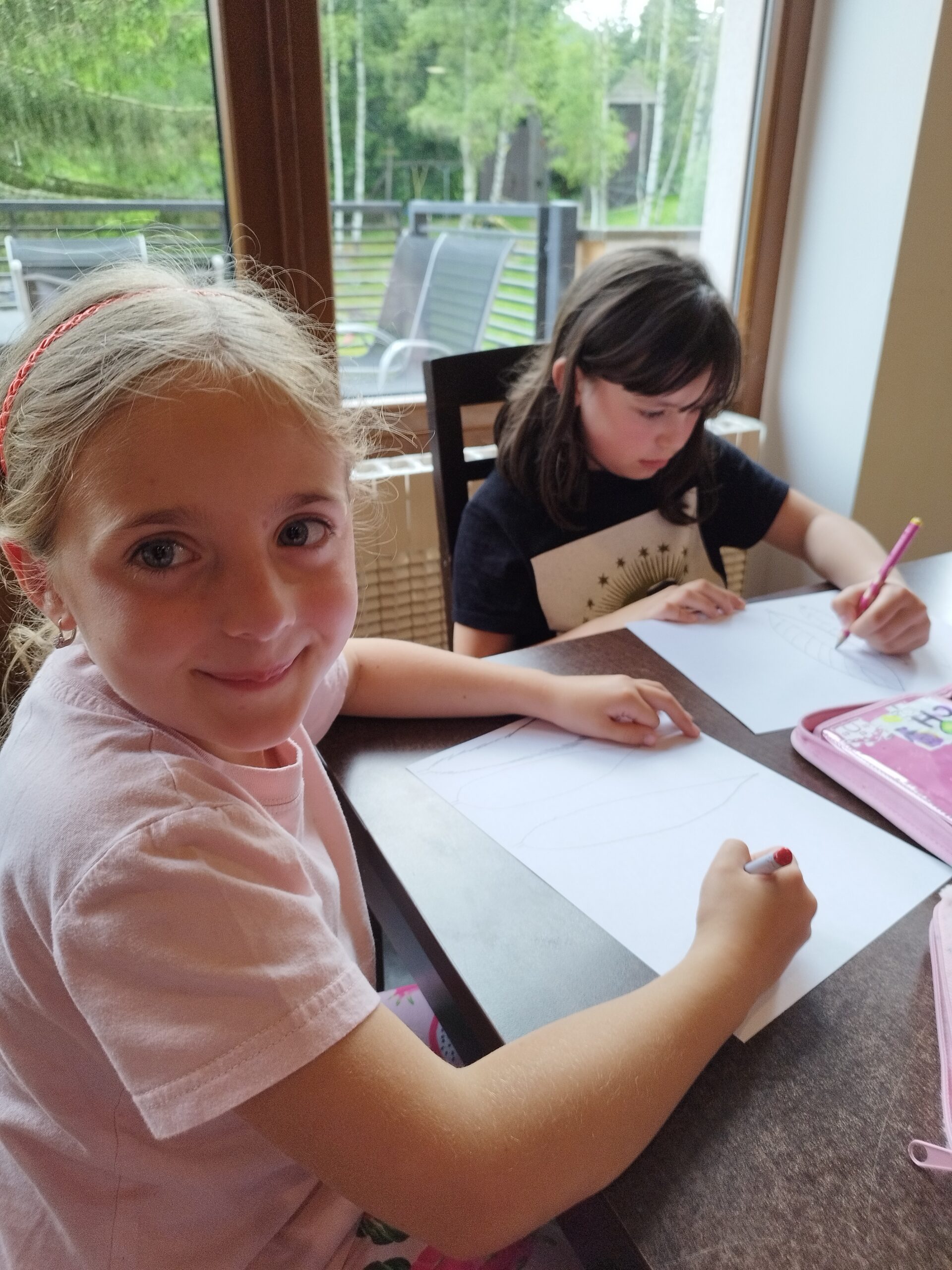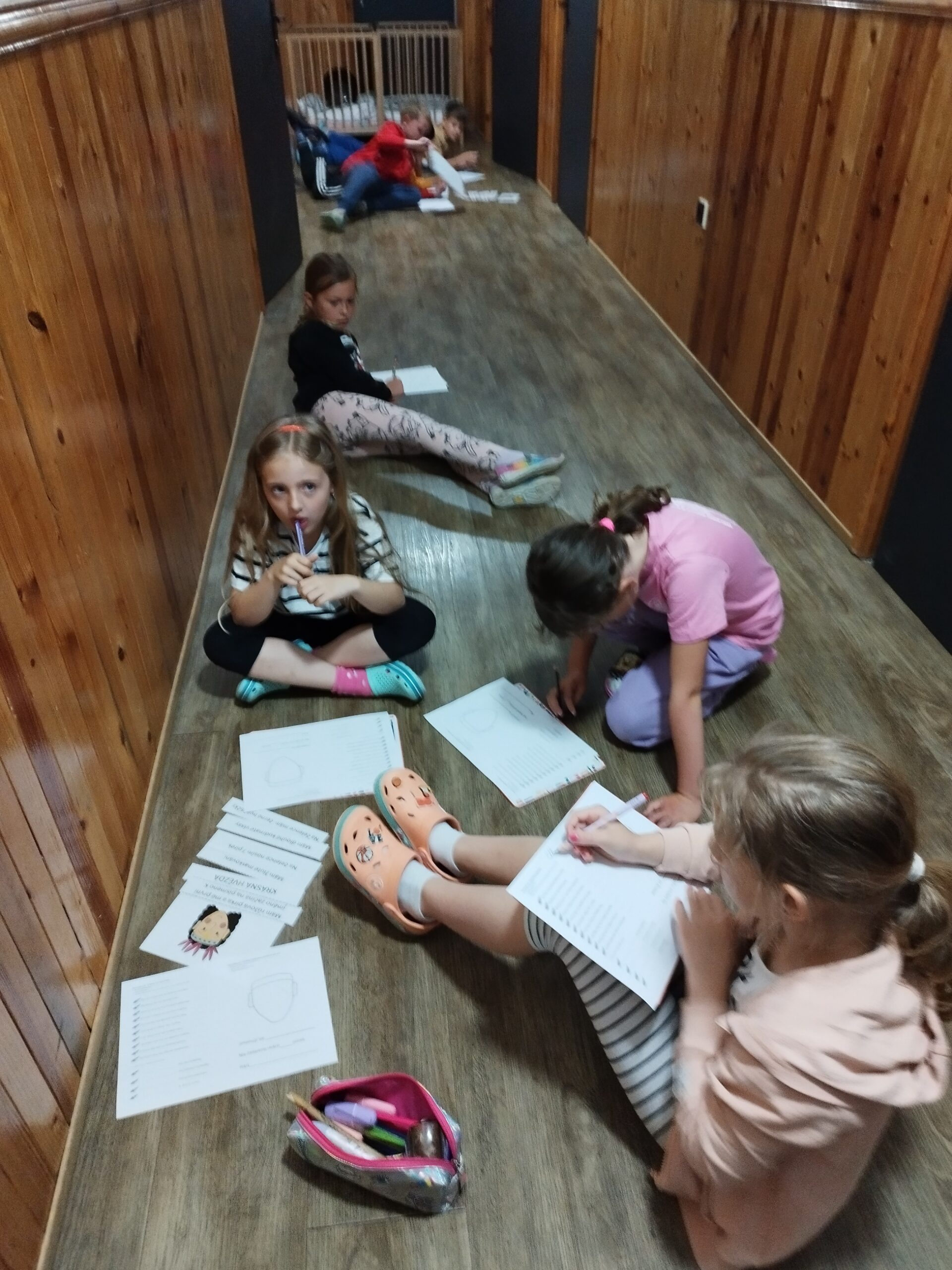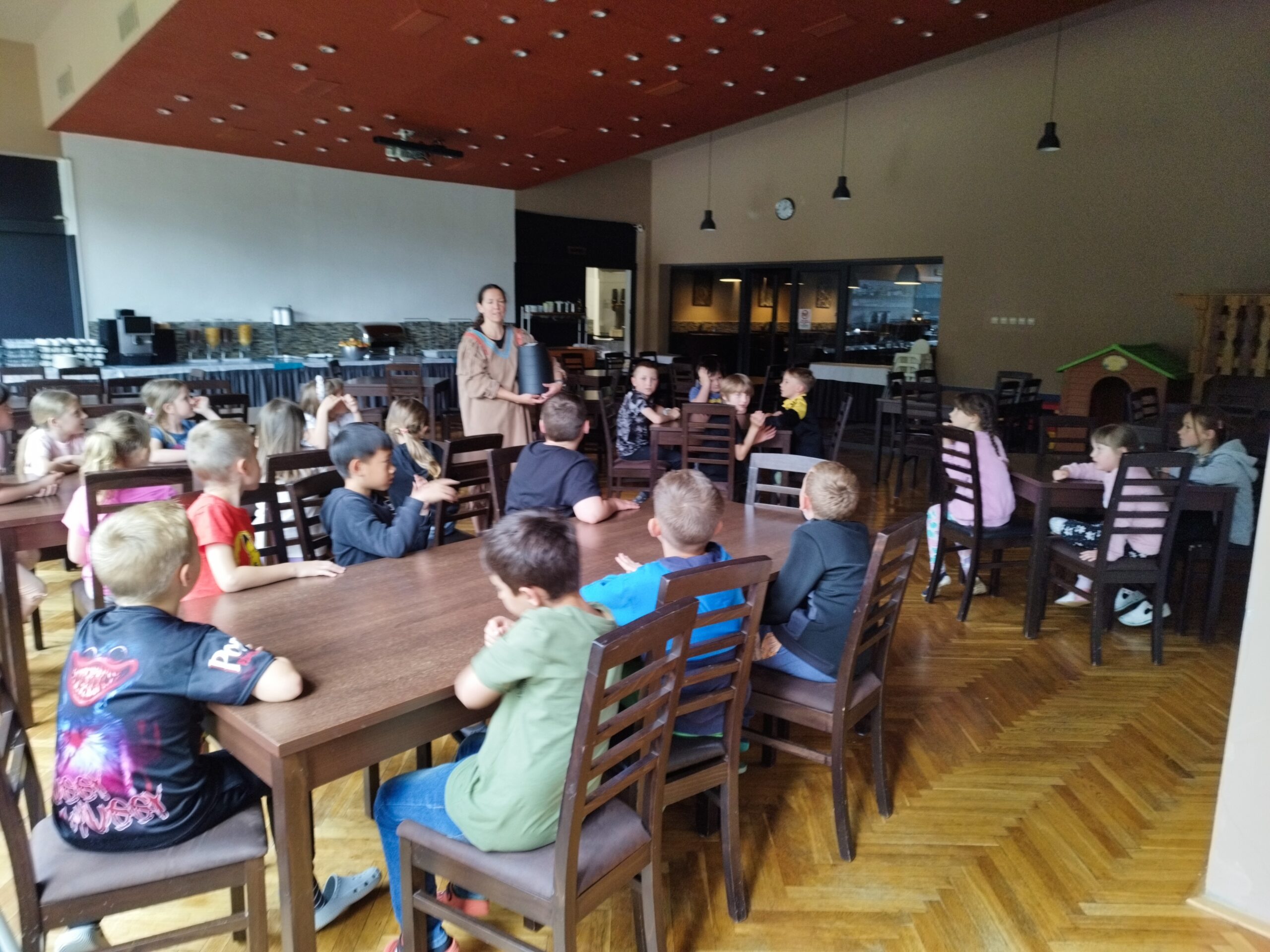 Druhý den nás přivítalo sluníčko a naprosto úžasná snídaně v podobě švédského stolu. Byla šunka, sýr, tři druhy pomazánek, vajíčka natvrdo, mini párečky, zelenina ovoce, med, marmeláda, jogurt, lupínky, mazanec, bábovka… Pak jednotlivé třídy vyrazily dle svého programu do přírody. K obědu jsme se opět sešli u výborného oběda a zase hurá ven. Společnou večeři jsme si osladili s buchtičkami se šódo. Večer druháci vyráběli indiánské čelenky, prvňáci psali deník a páťáci hráli únikovou hru. Zítra druháky a páťáky čeká celodenní výlet, tak šup do postele a dobrou noc.