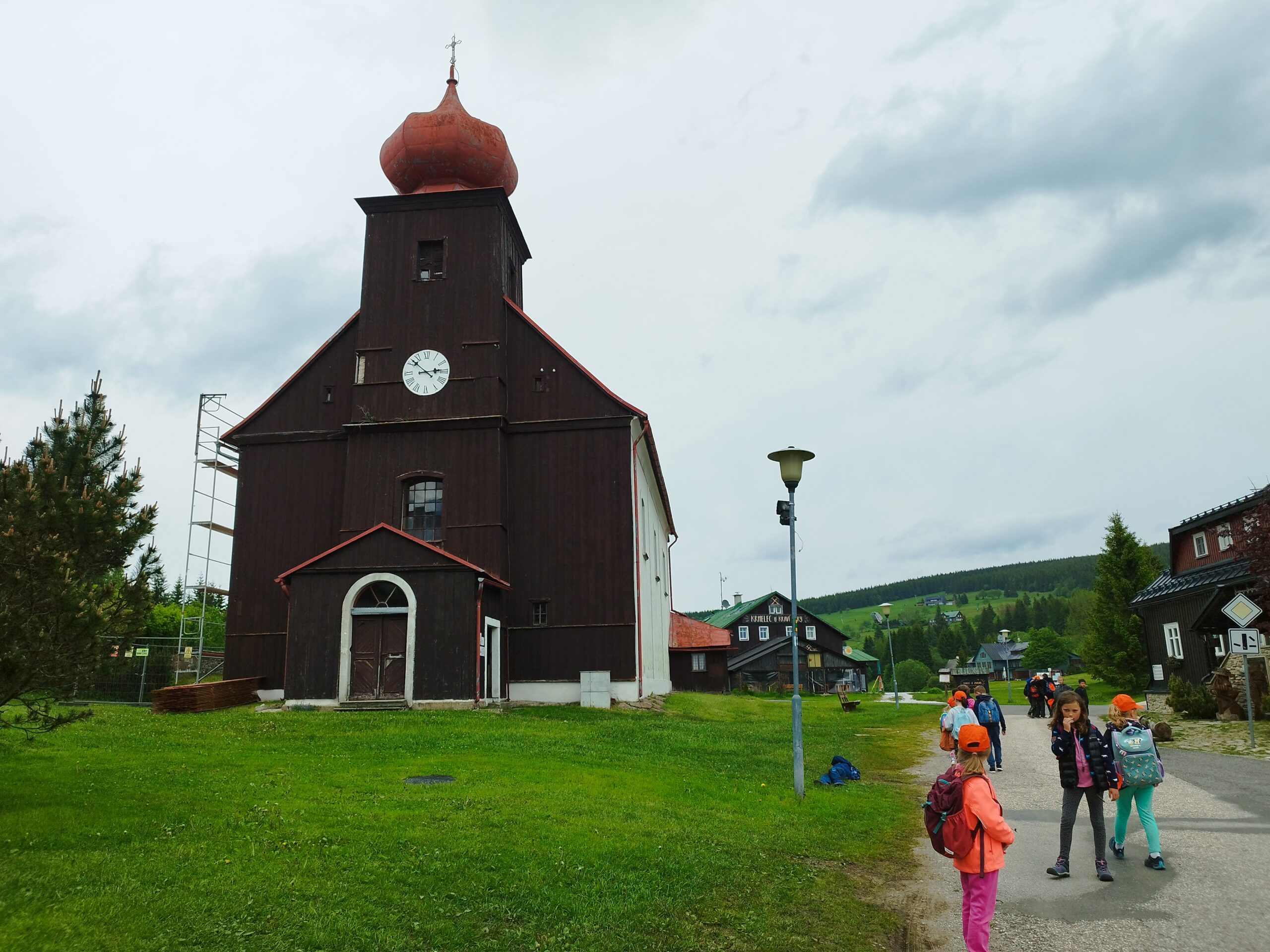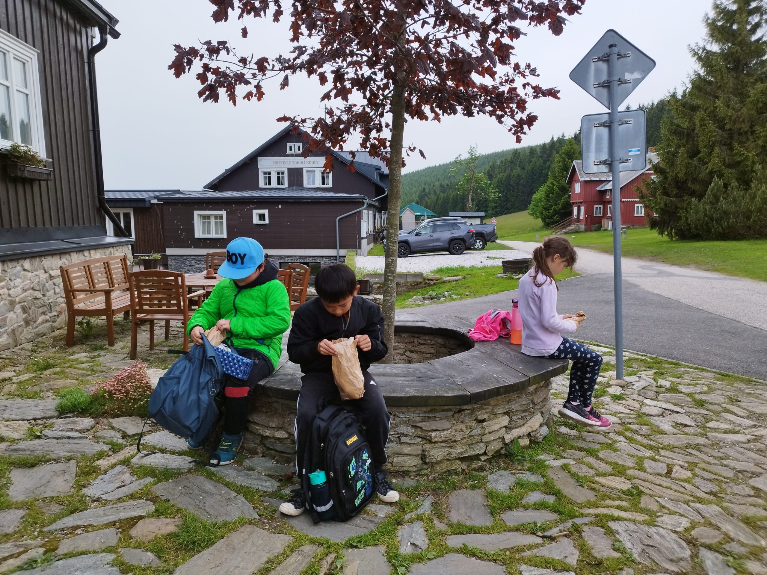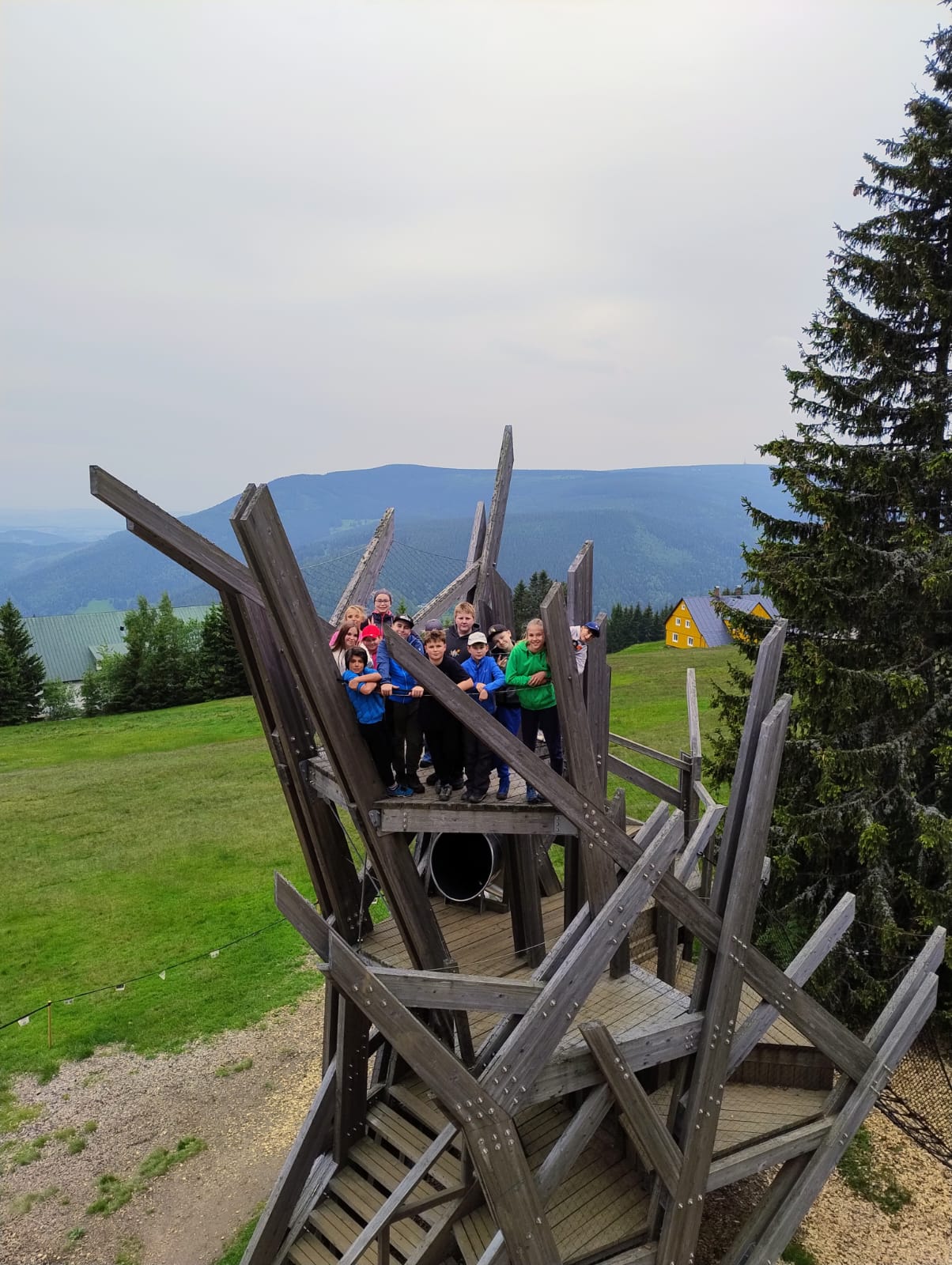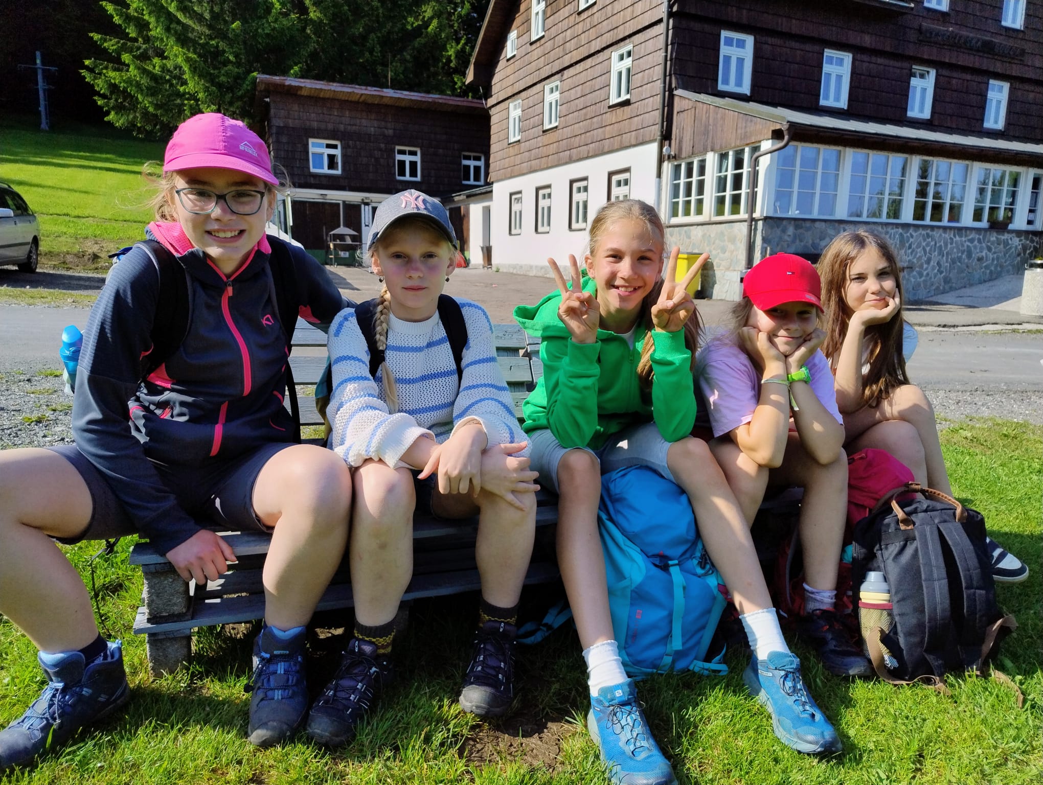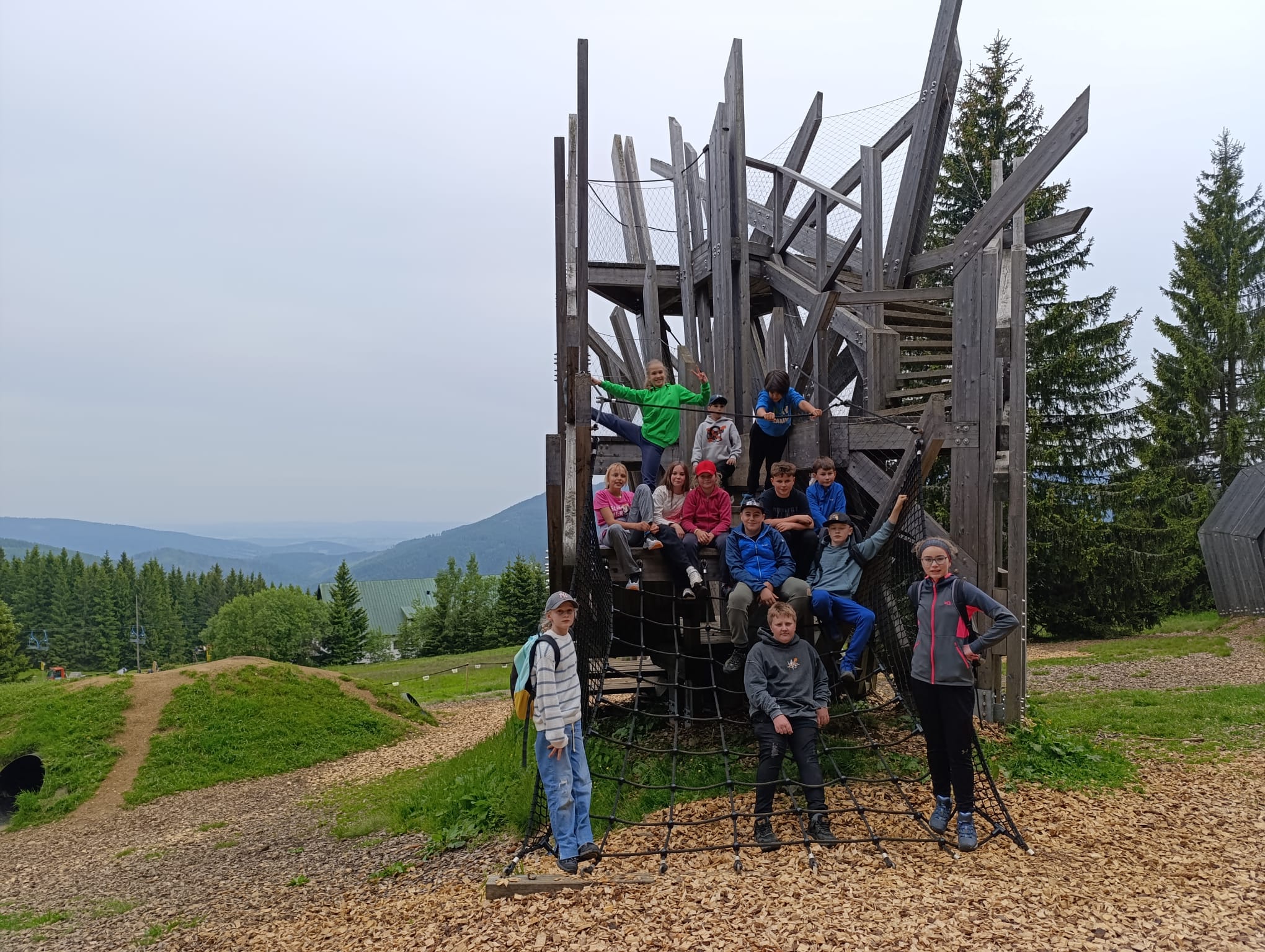 Středa byla ve znamení celodenních výletů. Druhá a pátá třída vyrazila na Sněžku. Počasí bylo všelijaké, ale děti byly skvělé a šlapaly jak o závod. Vrcholu jsme dosáhli všichni, byla to paráda. Prvňáci dopoledne stavěli lesní domečky a odpoledne vyrazily na Pomezní Boudy do korálkové dílny a pak šlapaly pěšky zpět na naši základnu.